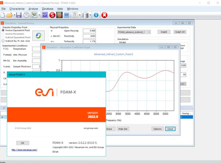 ESI FOAM-X 是一套獨立的實用程式,用於快速表徵阻抗管測量的開孔多孔材料的