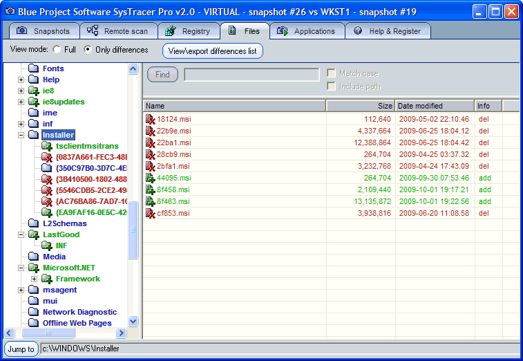 Possibility to choose scan type: files,registry or both Export snapshot