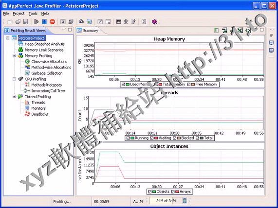 AppPerfect Java Profiler profiles a Java Virtual